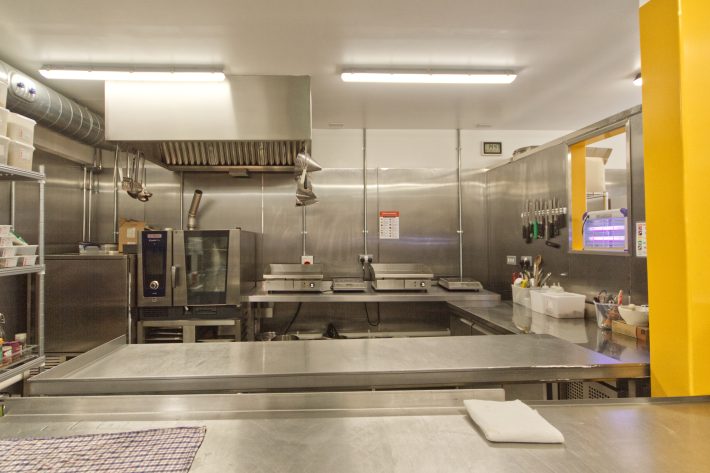 The Kitchen is a recently refurbished commercial kitchen, fully equipped with professional catering equipment and utensils.